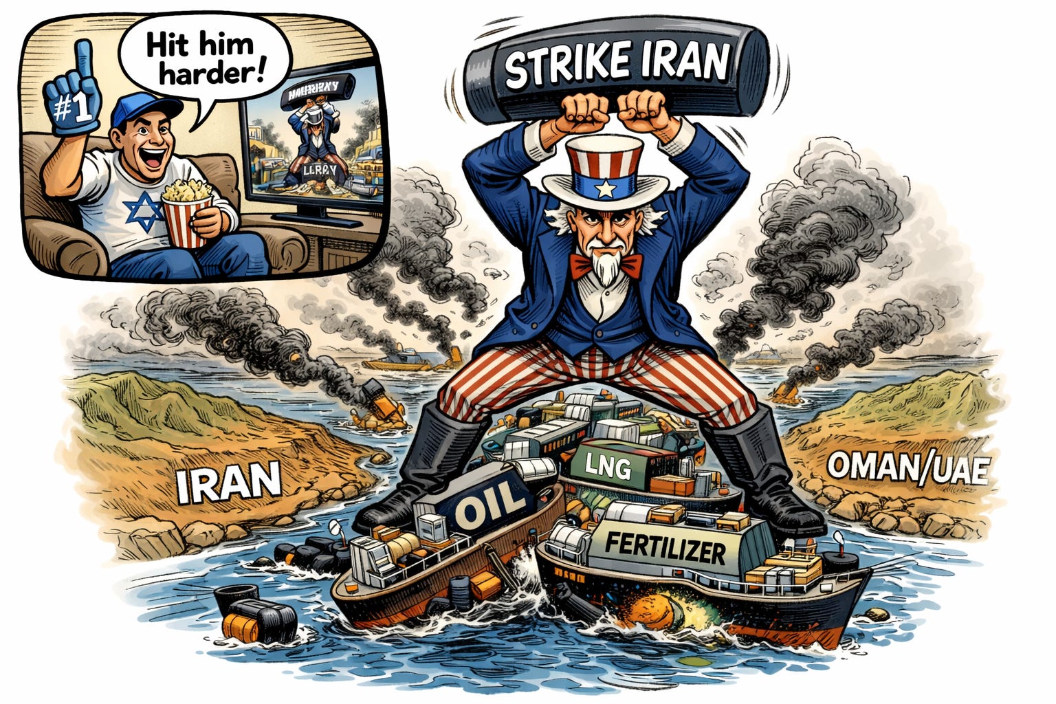The Gulf states are 90% reliant on food imports, 70% of those imports came through the (now closed) Strait of Hormuz [12]. While the GCC claims they have reserves for months, the threat of scarcity & massive price increases looms. The 20 Fujairah Grain silos hold 300,000 tons of wheat, barley and corn. While rationed portions of grains may keep people alive, I doubt it will keep them very happy.